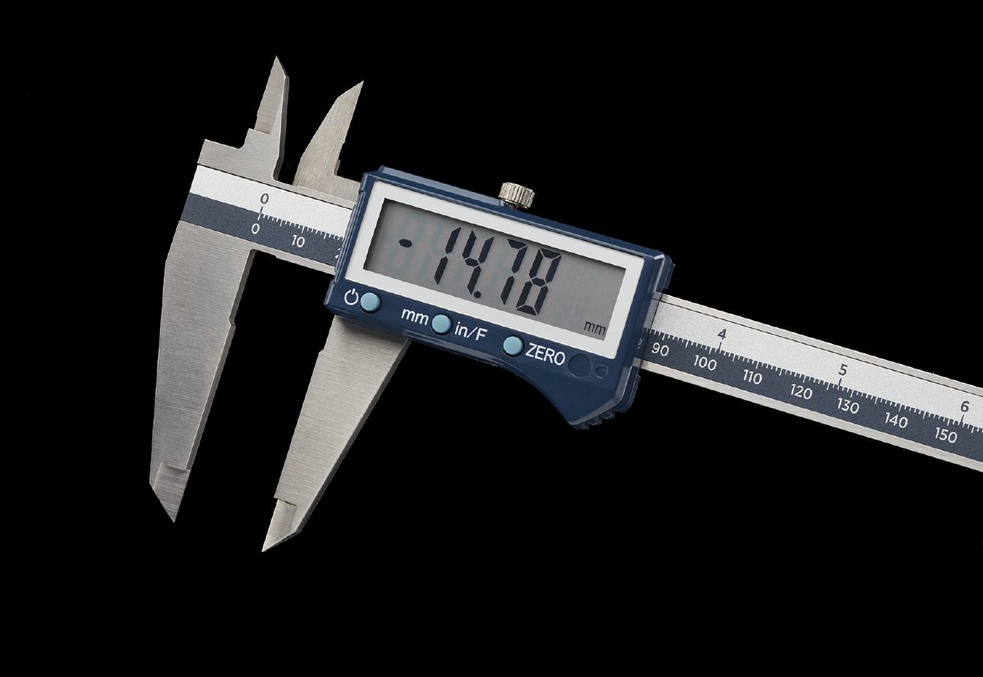 Digital skyvelære med stor LCD skjerm med 13 mm store siffer for rask avlesning av måleresultatet. Kan måle både innerdiameter, ytterdiameter, dybde og høyde samt rissefunksjon. Skala i rustfritt stål. Avlesning i mm eller tommer, svarshastighet 3,0 m/sekund, automatisk avstenging. Absoluttmåling og nullinnstilling i alle posisjoner. Laget etter DIN 862. Batteritype CR2032 inngår.