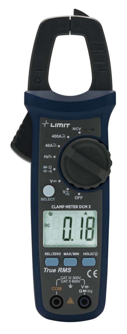 True RMS digital clip-on ammeter/multimeter with automatic range. For measuring direct/alternating voltage, AC/DC, resistance, diode, continuity, frequency and duty ratio. None-contact voltage detection, auto power off saving battery. Supplied complete with test cables, storage case, batteries and manual. Safety isolation CAT II 600 V, CAT III 300V.