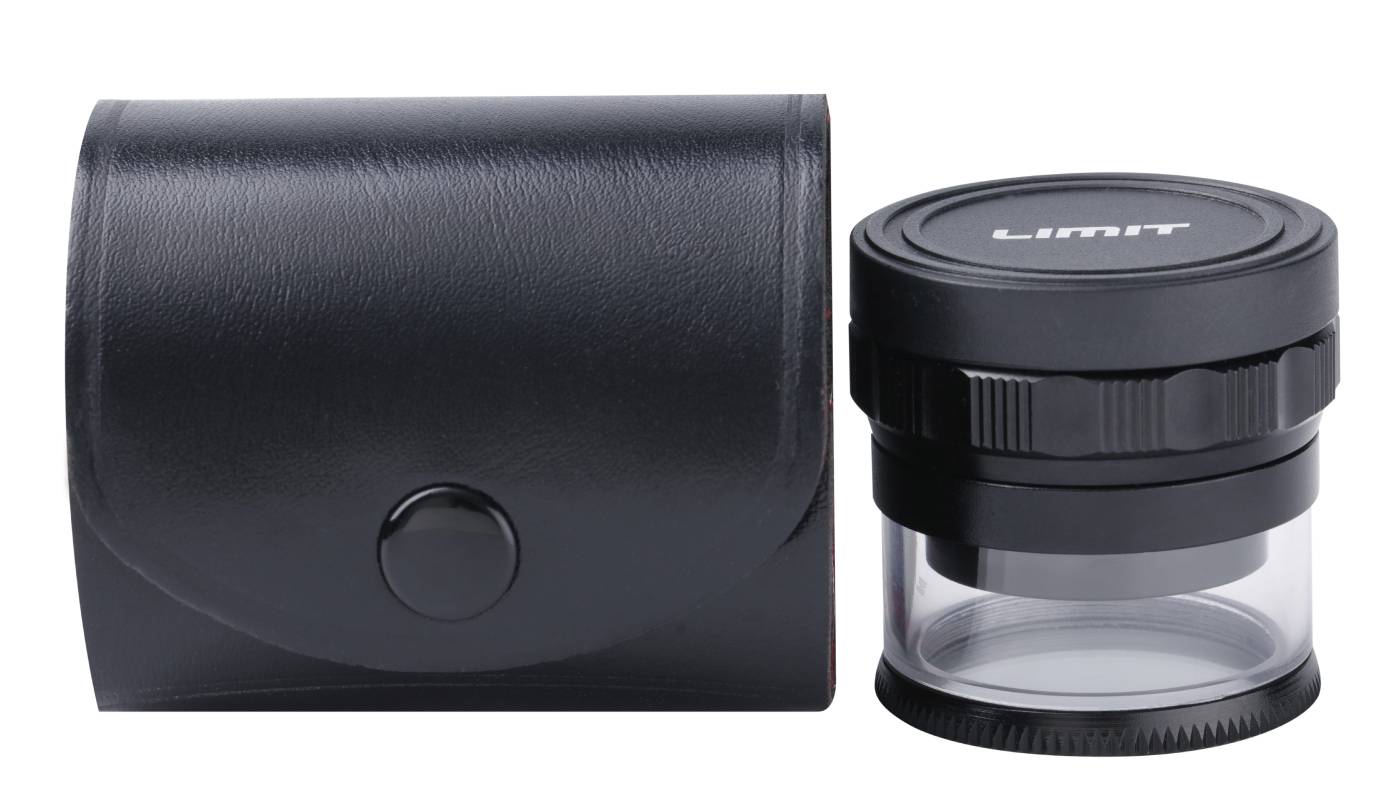 Workshop loupe Limit. Measuring loupe with measuring scale. Focusing ring for sharpness. 167800101 With length scale. LED lighting. 167800200 With length, angle and radius scale. LED lighting. 167800309 Measuring loupe with length scale, Focusing ring. 167800408 Set of scales to fit the loupe. Batteries included, 4 x 1.5 V AG9.