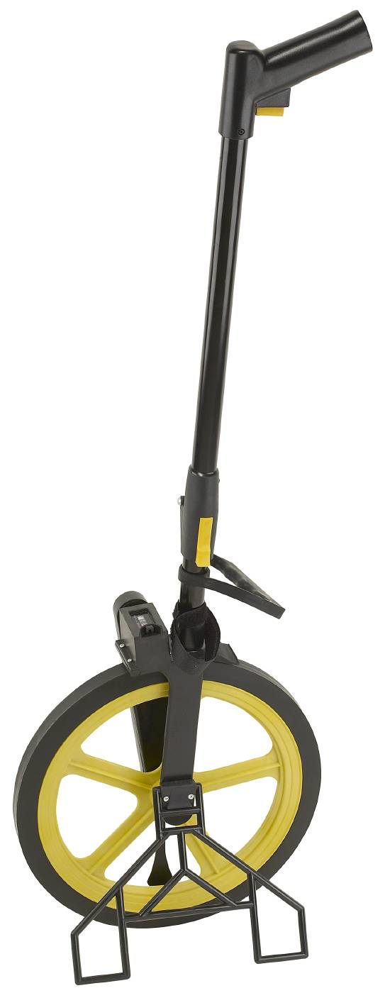 Viktbalanserat mäthjul med hjulbroms i handtaget och ståstöd. Vikbart i två delar för enkel transpart. Används för uppmätning av längre sträckor t. ex. vid vägarbeten och liknande. Levereras med transportväska.